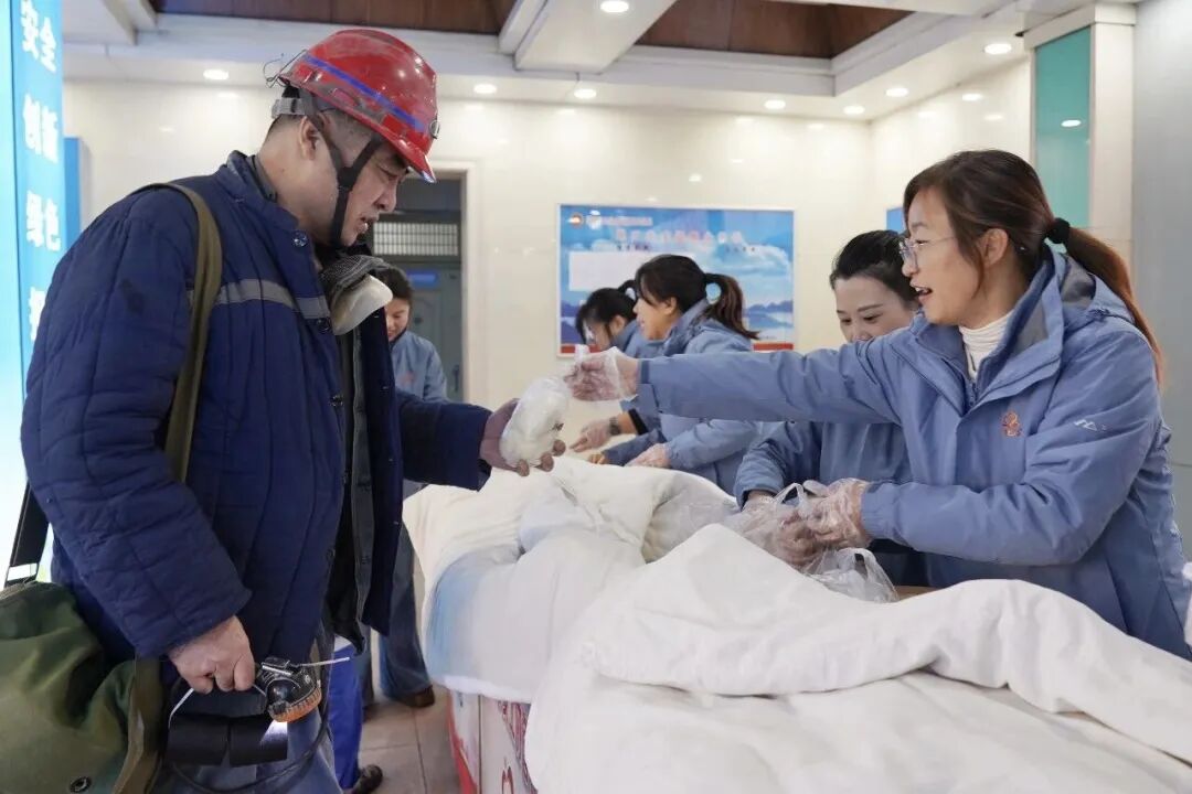 春日的风还带着些凉意,蒋庄煤矿井口服务大厅里,却热气腾腾。女工协管员们端着刚蒸好的肉包、刚开锅的热汤,守在井口边。上下井的职工们接过包子,咬一口,油香四溢;喝一口汤,暖意从胃里直达心窝。