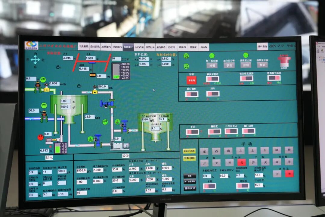 与此同时,智能加介系统利用3D物位激光雷达与精准数学模型,实现介质自动添加;智能加药系统根据入料浓度和水质自动调整药量配比,大幅压减人工干预,在稳定产品质量的同时,实现了降本增效。