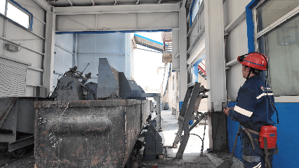 解决问题的出路在于与时俱进、以变应变。三河口矿业公司将目光投向翻矸环节,决心从源头打通“矿车”与“集装箱”之间的壁垒。他们没有简单采购成套设备,而是用最省钱的办法,对原有翻矸机进行深度改造,在机械结构、液压系统、传感识别三个维度同时发力,研制出新型多功能翻矸机,能够自动识别进入工位的运输载体,并智能切换翻转程序。据了解,这一“双向适配”能力,在行业内尚属首例。