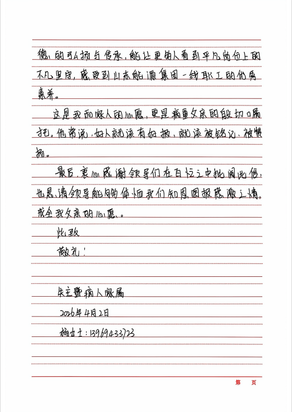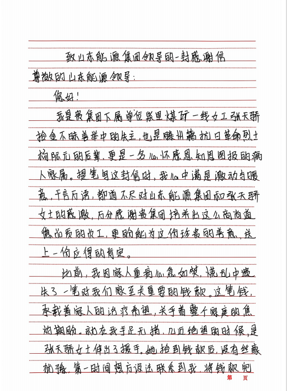 从山东能源批转下来的感谢信