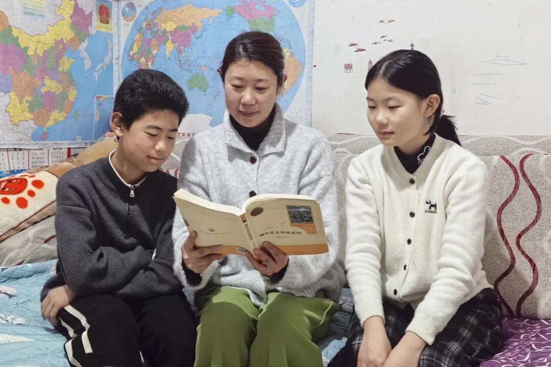 她独自挑起照料一双儿女