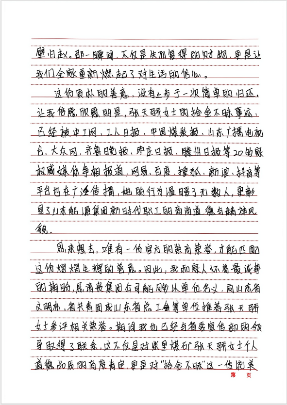 张天骄拾金不昧的义举