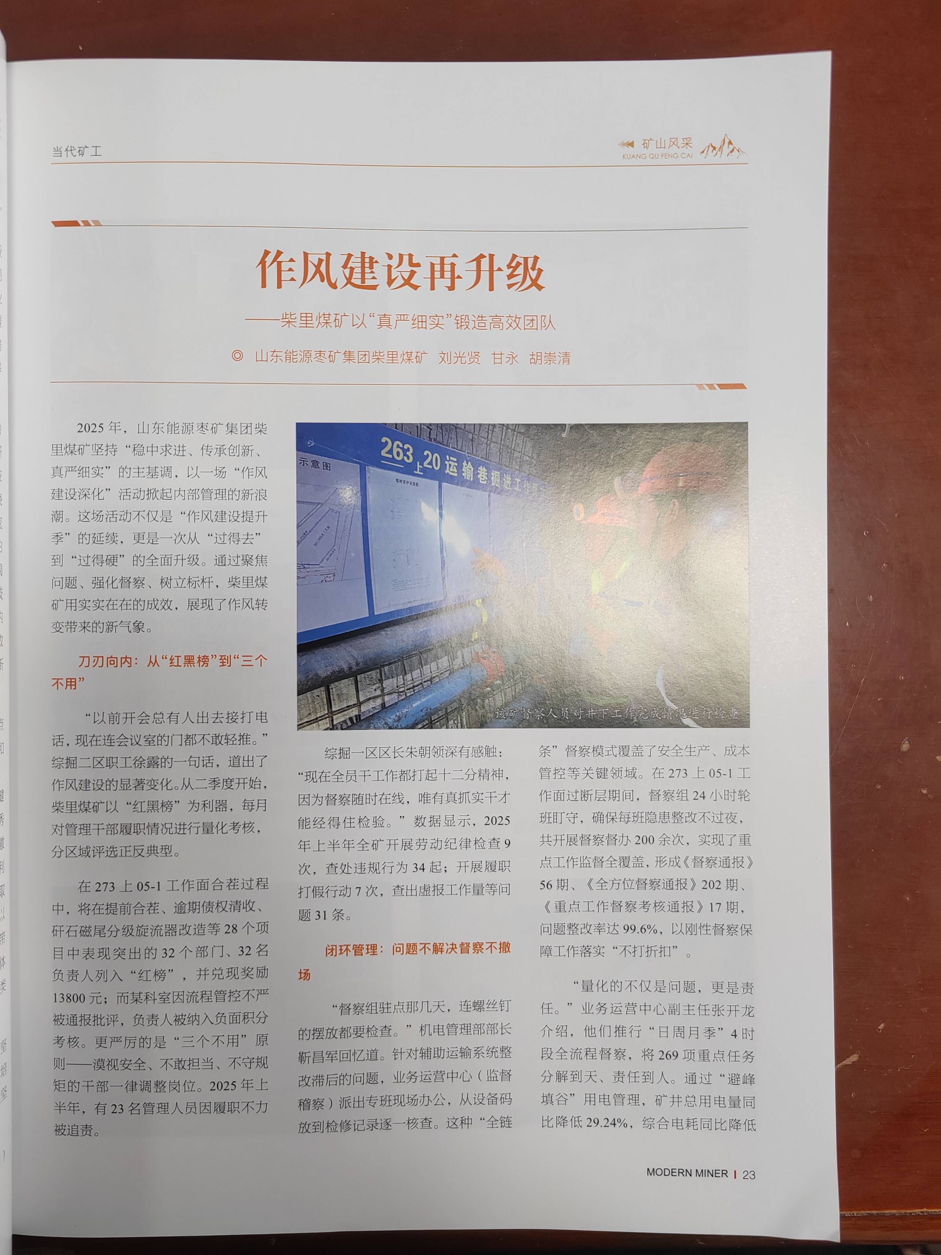 “作风是战斗力,更是生产力。”矿长苏林在工作会上这样强调。如今,走进柴里煤矿,从井下的精品工程到机关的“首问负责制”,从“躺平式”干部无处藏身到“店小二”服务,这场始于作风建设的变革,正在为这座61年老矿高质量可持续发展注入持久动能。