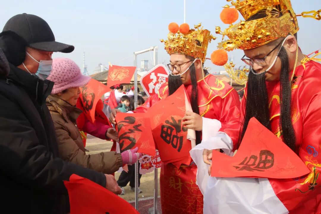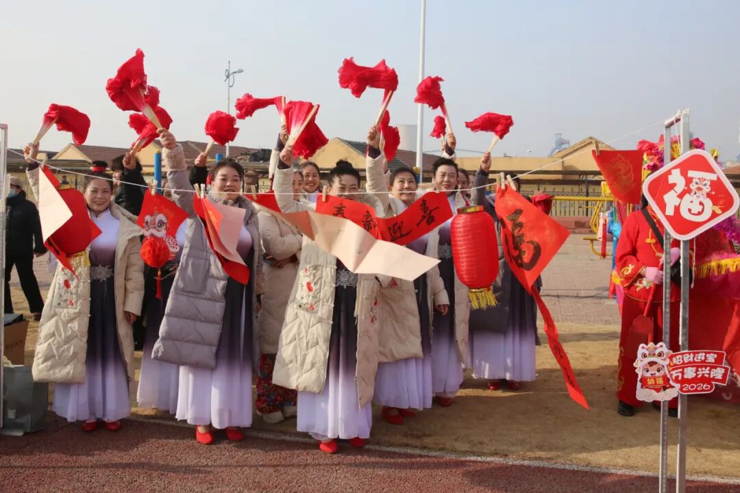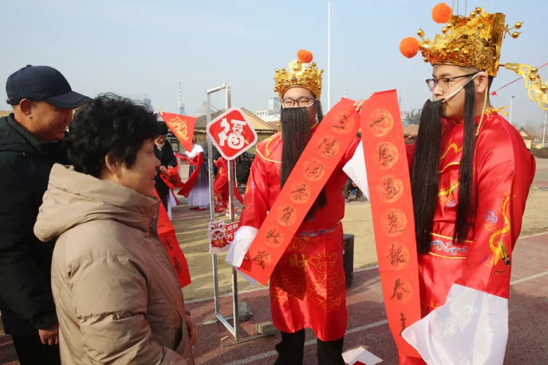 上午九点,随着欢快的锣鼓声,由高跷、秧歌和民俗卡通人物组成的巡游队伍从广场中心出发。身着彩衣的“财神”“福娃”穿行在人群之中,向职工家属派发“福”字和小礼品,引来阵阵欢笑与追逐。