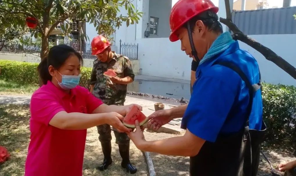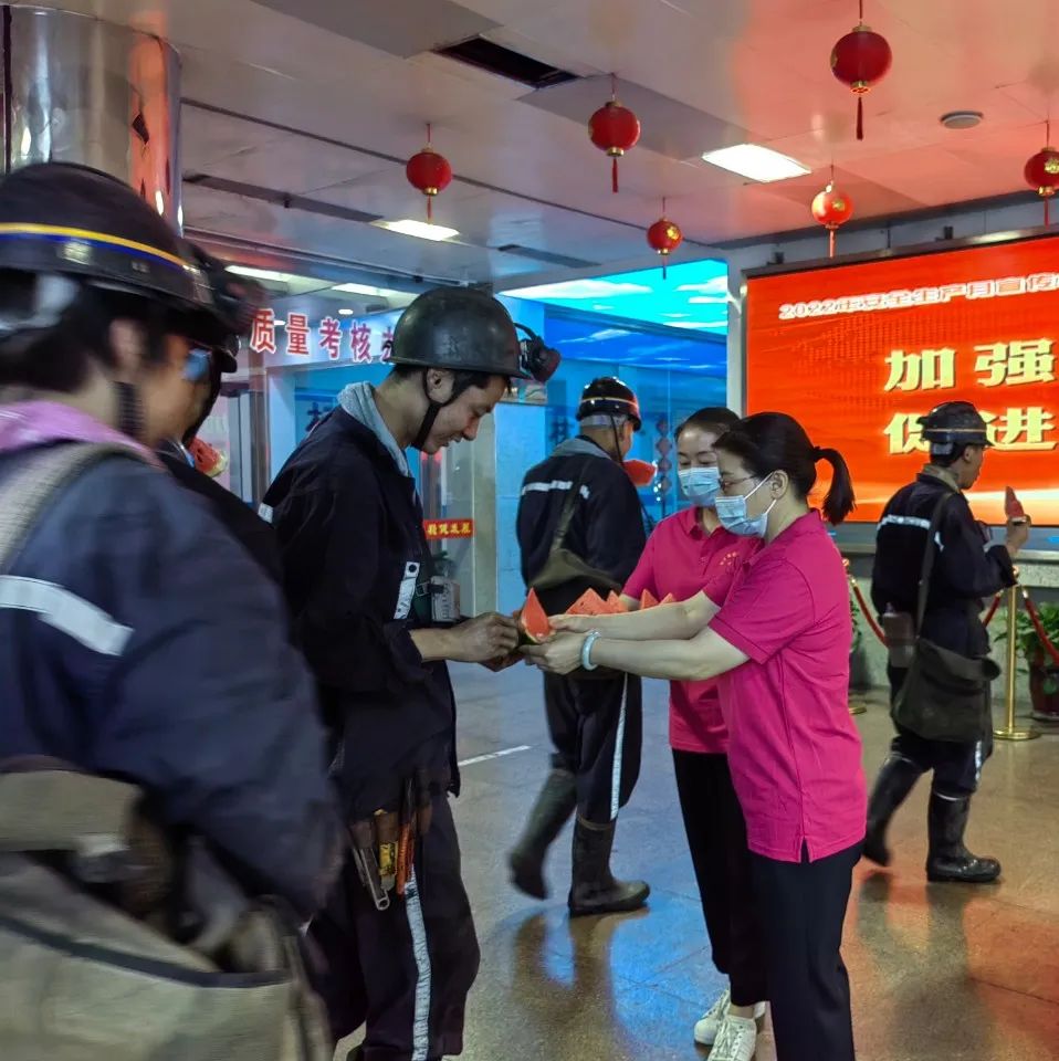 “师傅,您辛苦了,请吃块西瓜解解渴”“师傅,天热干活可要注意安全呀……”在井口“亲情驿站”,女工协管员们把一块块清凉解暑的西瓜送到职工手中,并叮嘱他们在井下工作要遵章作业,安全生产。