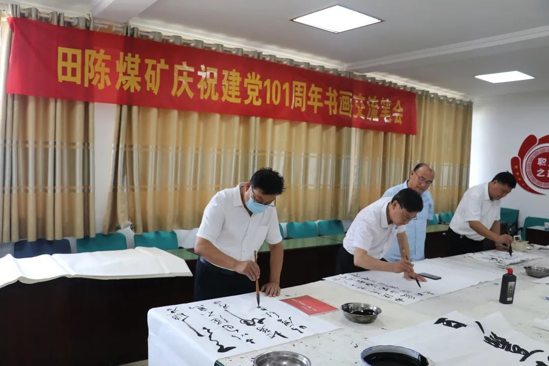 丹青溢彩书盛世,翰墨飘香著华章。为庆祝中国共产党成立101周年,喜迎党的二十大胜利召开。6月29日,田陈煤矿工会举办庆祝建党101周年书画交流笔会活动。